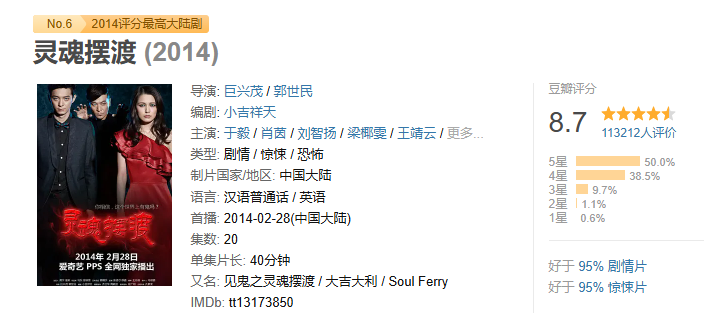 《灵魂摆渡》系列可以说承载了一代人的青春回忆,而且口碑炸裂,该剧的第一部豆瓣评分高达8.7,之后的第二、三部也都超过了7.5分。