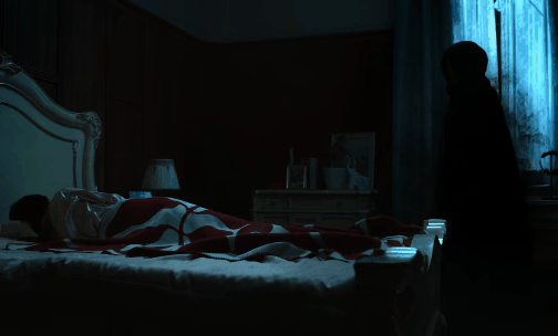 紧接着,在漆黑的夜晚中,一只血手突然出现,女人声嘶力竭的大喊着“有鬼”,脸上布满奇异的纹路,而与此同时,一群身穿老式戏服的女子,落在了她的房间上空。